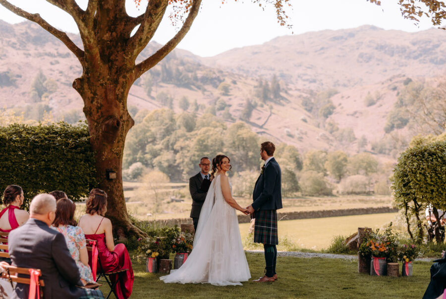 We offer a choice of wedding packages, giving you the freedom and flexibility to tailor your dream Lake District wedding to suit your vision, timeline and budget – your wedding, your way! Enjoy exclusive use of the entire estate, with 17 bedrooms for both weekend and midweek weddings — all surrounded by breathtaking views of the Easedale fells and iconic Helm Crag. The perfect location for an extended celebration with all your favourite people!